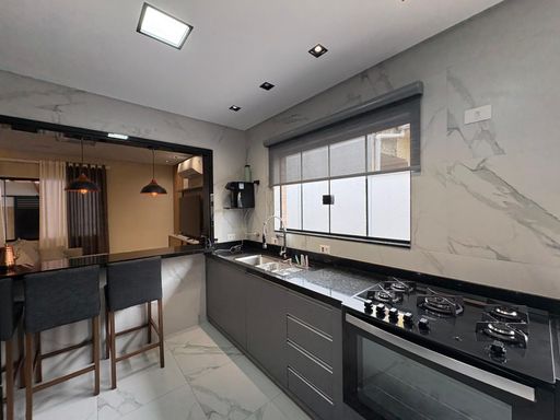 Além do espaço interno bem distribuído, o imóvel conta com Garagem coberta 60mts Para 4 carros e ainda espaço para motos ou bicicletas Terreno total 240mts Acabamento interno e externo em porcelanato de primeira (Eliane) Pressurizador nas torneiras e chuveiros ótima pressão Som ambiente com bluetooth na parede 2 cxs no teto da casa e mais duas na área da piscina, opções de lazer para toda a família. A localização é um grande diferencial: próximo a comércios, supermercados, restaurantes, escolas e com fácil acesso às principais vias da cidade.